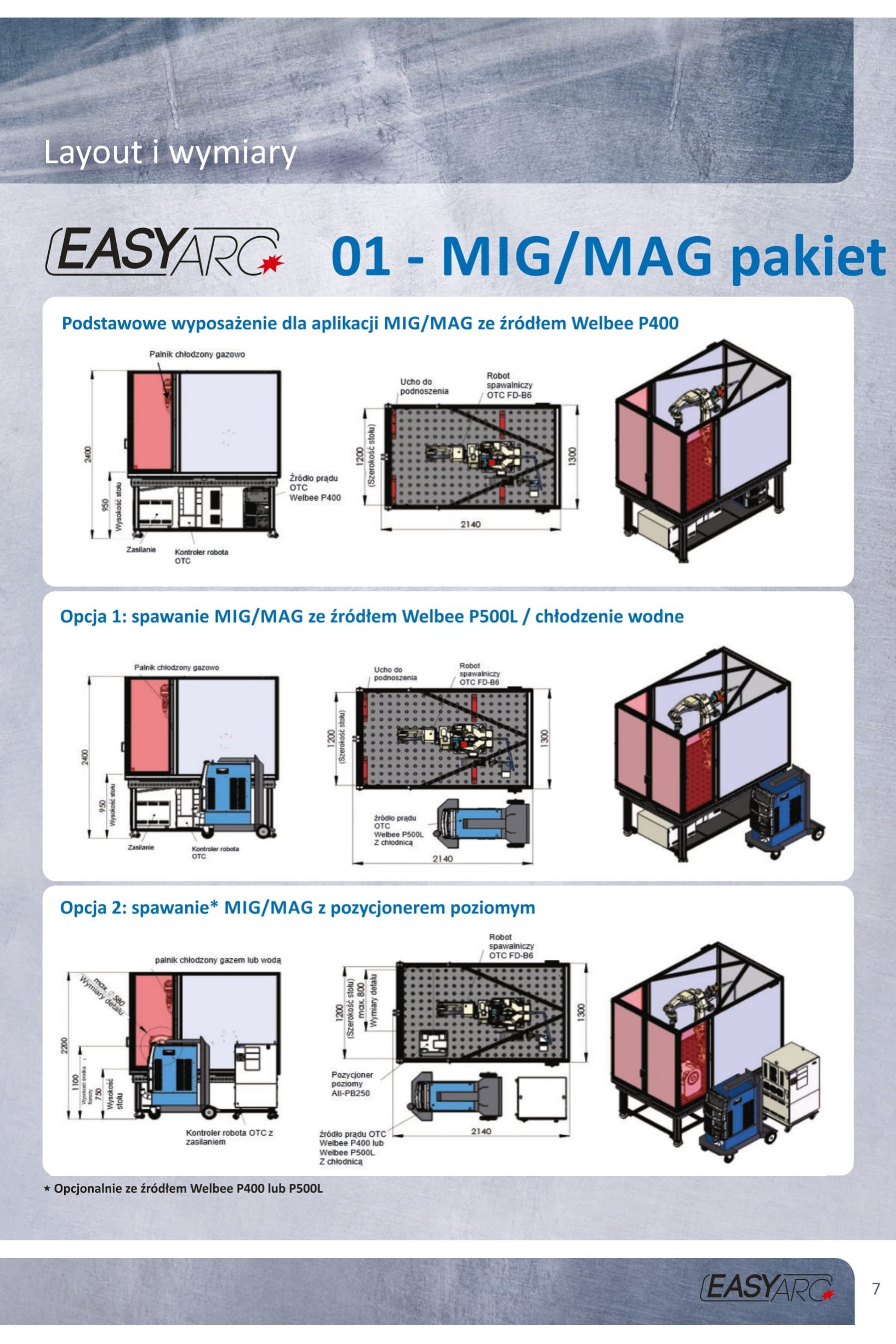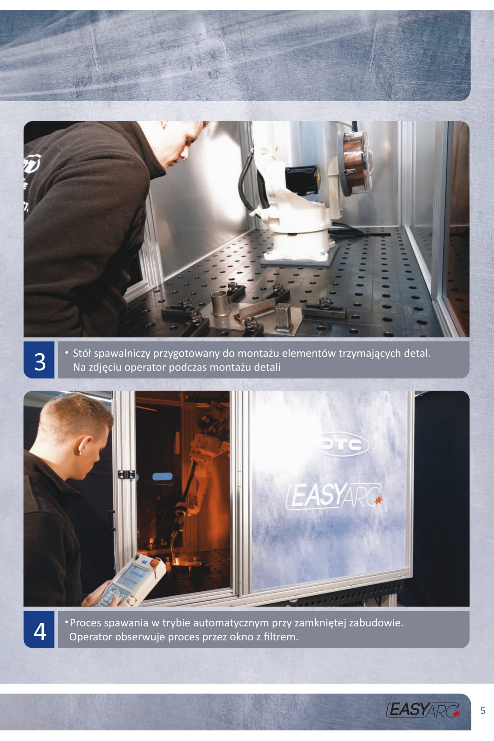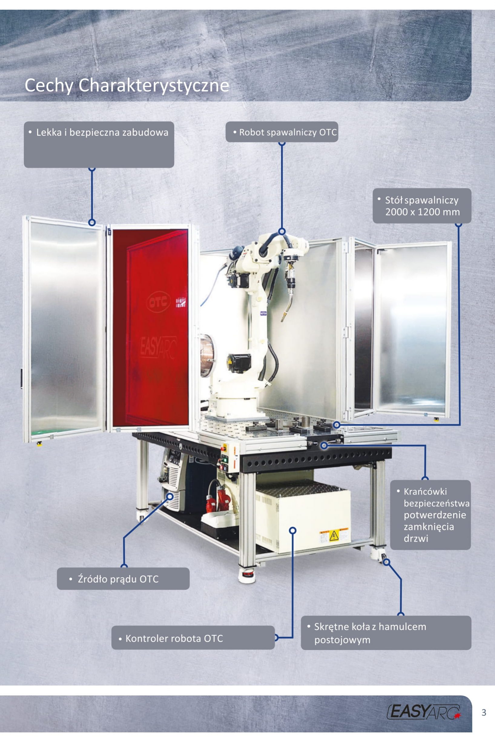 EASY ARC obejmuje kompaktowego robota spawalniczego z intuicyjnym sterowaniem OTC Easy-Teach, który zapewnia operatorowi perfekcyjne spoiny dzięki zintegrowanemu systemowi eksperckiemu i własnemu falownikowi źródła zasilania MIG/MAG 400 A producenta.